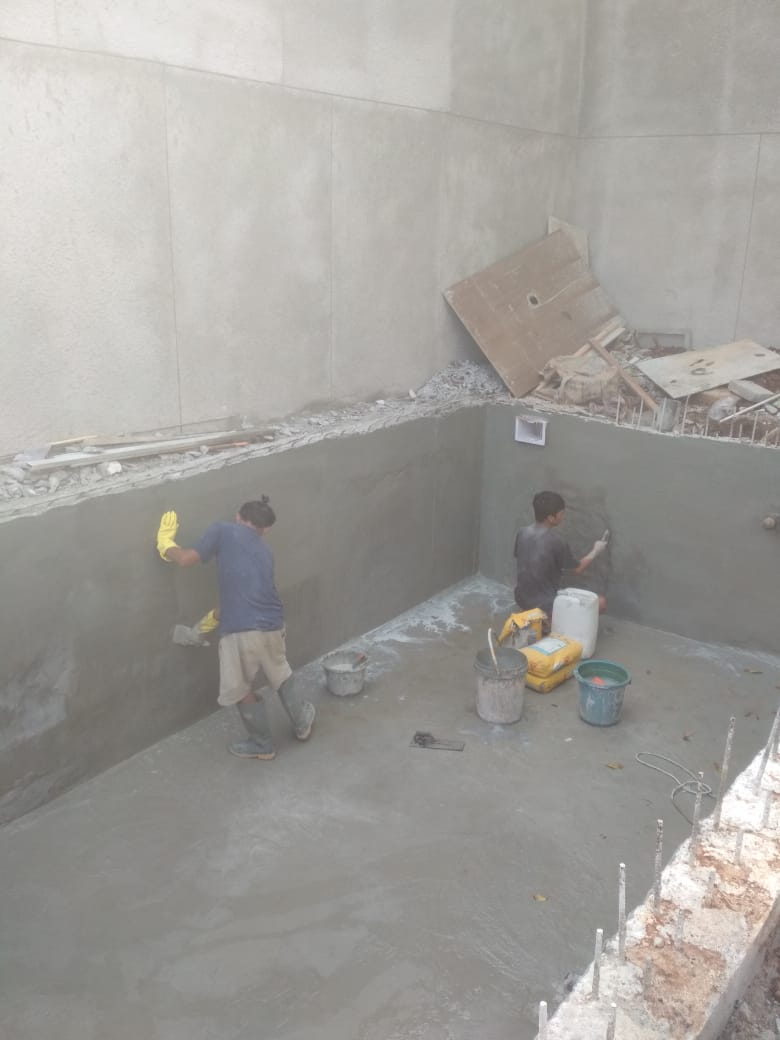 B. Jenis Pekerjaan Waterproofing Coating 1. WaterProofing Coating Water Based atau waterproofing dengan jenis akrilic atau Disebut Waterproofing Satu Componen yg mana jenis waterproofing ini bersifat Finish, Aplikasi waterproofing ini Bisa untuk: Tembok luar, Dak atap, Talang beton, karpus genteng dan lain-lain, Bisa di aplikasikan dengan Mate Polyester atau Membrane Kassa (Kain Kasa Polyester) Untuk menjaga keretakan dan retak rambut pada permukaan beton atau dinding luar dan Waterproofing Ini Bersifat Fleksibel. 2. Waterproofing Semen Based adalah Jenis waterproofing berbahan semen/mortar atau disebut waterproofing dua componen,yang mana waterproofing ini di gabungkan antara Componen A dan B terdiri dari semen/mortar yg sudah dicampur dengan material lainnya dan di cairkan dengan Bonding aggent (Lem beton/Calbond) Di aduk rata menggunakan micxer sehingga dapat melekat dengan sempurna ke area yang akan di waterproofing, Area Yang dapat di aplilasikan waterproofing semen based meliputi: Kolam renang, kolam ikan, planter box, balancing kolam, Grontank, Bak penampungan air dari beton, Basement, Trowongan dan lain - lain.