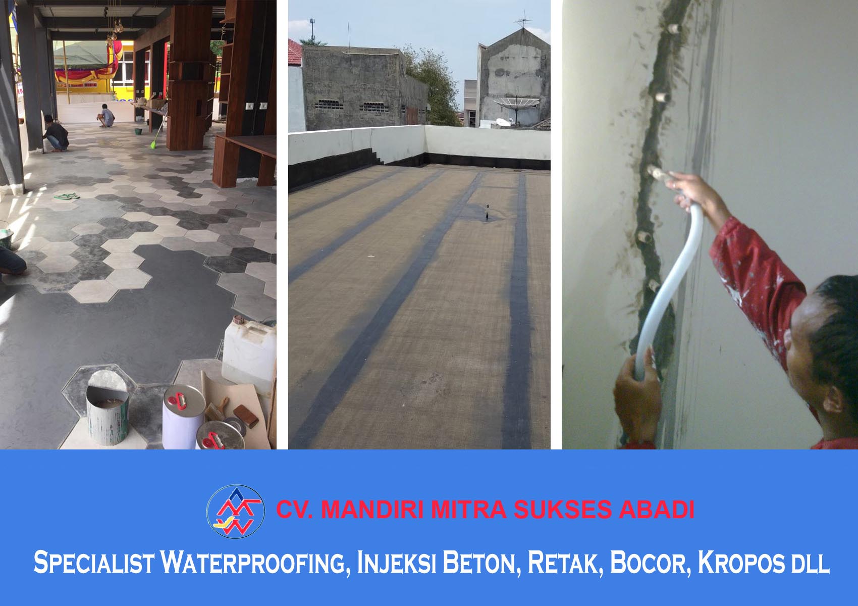 CV. MANDIRI MITRA SUKSES ABADI adalah perusahan yang bergerak dalam bidang specialist Contractor dan Waterproofing Yang sudah sangat berpengalaman dibidang aplikator waterproofing dan Injeksi Beton.